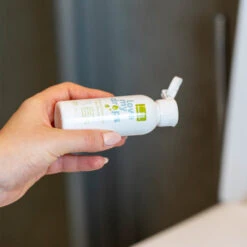 The liquid is super-concentrated and contains biodegradable essential oils and alcohol. When you spray or pour a few drops into the toilet, the mixture forms a protective film on the water. The membrane traps 98% of the foul-smelling odor and when you then flush, the spray leaves a pleasant odour of eucalyptus.