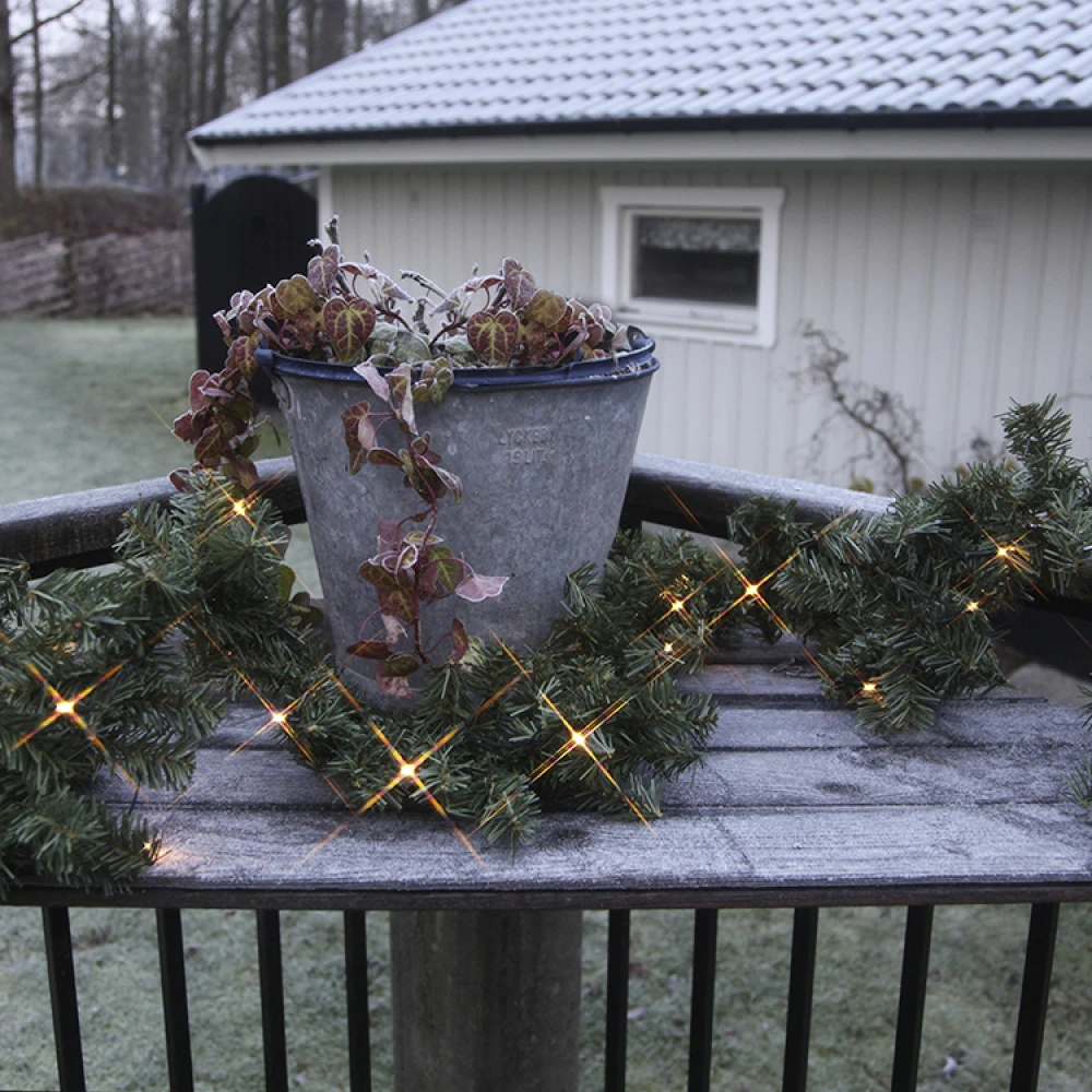 Create a festive Christmas atmosphere with this fir tree garland adorned with 30 brilliant LED lights. The garland works both indoors and outdoors and can easily be wrapped around the balcony railing or hung around windows and doors.