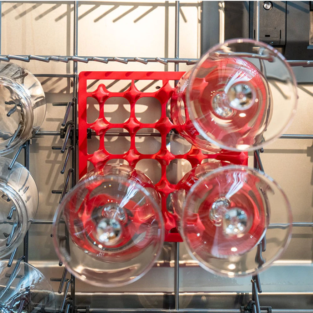 Tipple is a Swedish-made glass holder for the dishwasher that allows you to wash several tall glasses at the same time. Convenient to use after dinners and parties when you want to be able to quickly wash as many glasses as possible without risking them falling over or breaking.