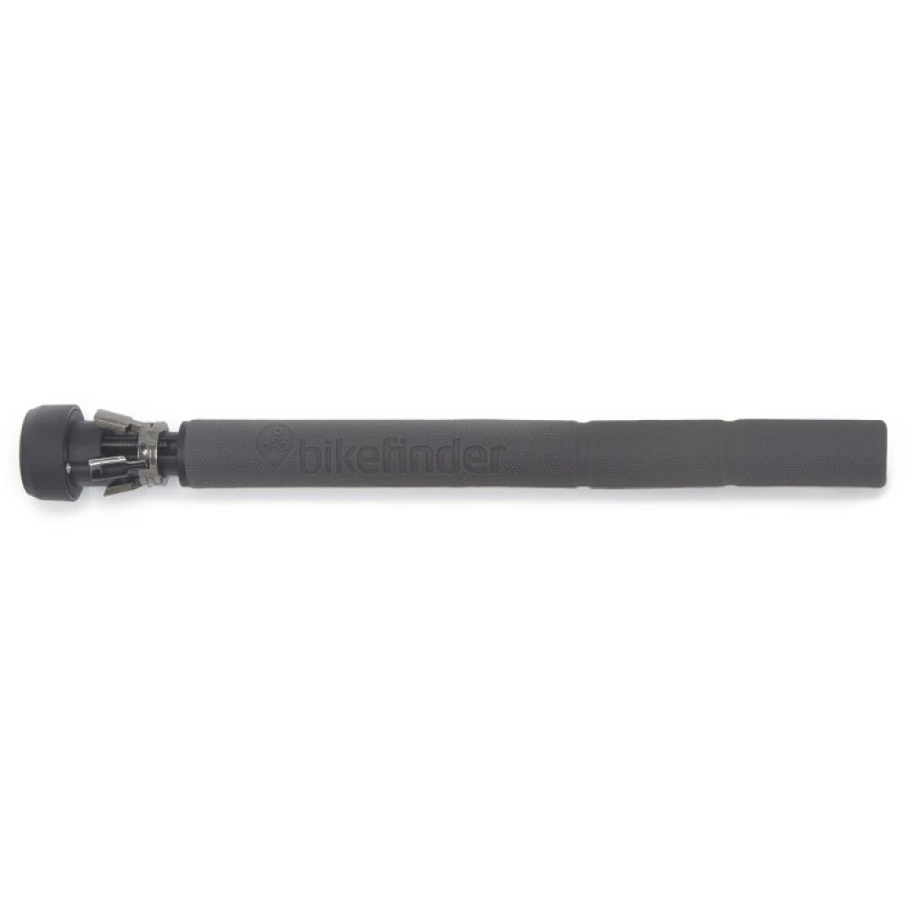 Start by charging the GPS. Then mount the BikeFinder in the handlebars and screw it on with the special tool included. Unprepared thieves will not be able to remove the tracking device, which has a bracket that expands inside the handlebars.