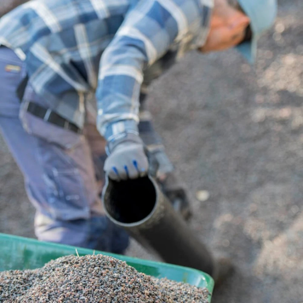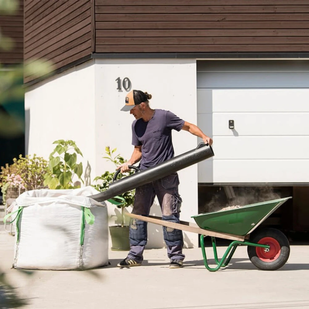 The ergonomic gravel shovel has a wide shovel at the front that can be used to shovel different types of materials. In addition to gravel, you can shovel chippings, mulch, shingle, pellets, feed, grain, grit and sand. You can also shovel soil and several other materials as long as they are not too wet.
