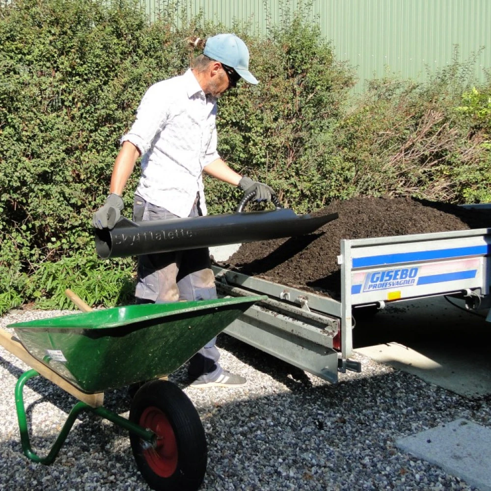 Peter could not use a traditional shovel, but with an old soil pipe, Peter managed to shovel the gravel from the sacks to the wheelbarrow in an ergonomic way that spared his injured back. The idea for Skyfflalette was born, and with the help of Almi and Swerea IVF, Peter received assistance in developing prototypes of his innovation. Skyfflalette is now manufactured in Sweden from durable polythene plastic.