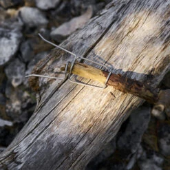 The grill fork is lightweight, durable and made of a single piece of stainless steel wire. The clever attaching device makes it easy to find a suitably sized stick to use as a handle. The fork pinches hold the stick in such a way that you needn’t worry about it falling into the fire.