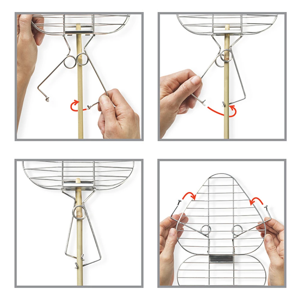 Place whatever you want to grill between the two grates and then lock them in place. Your food will not move about and you can easily grill both sides over the fire. The space between the two grates can be adjusted between two settings depending on what you want to grill. You can also open the upper grate and use the bottom grate as a regular grill grate.