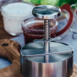A hamburger press is an essential item to have when making your own hamburgers. By pressing the burgers with a hamburger press, the burgers will be the same size and take the same amount of time to cook. This results in juicy burgers whether you’re making grilled burgers, cheeseburgers, vegan burgers or vegan burgers.
