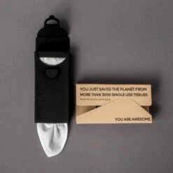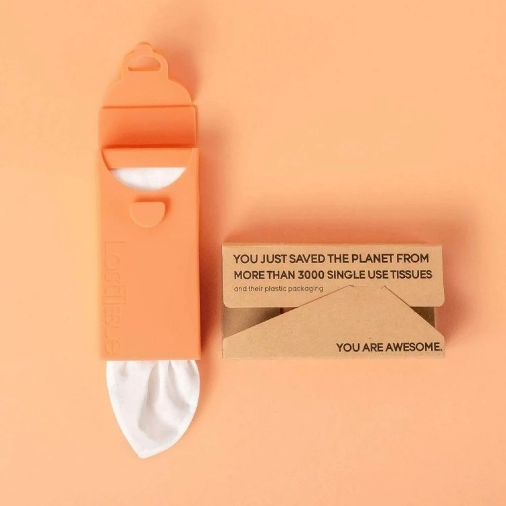 LastTissue is an environmentally smart handkerchief holder with 6 washable handkerchiefs in organic cotton. The environmentally smart reusable handkerchiefs replace more than 3100 disposable handkerchiefs and are packed in a small flexible box that fits in your pocket.