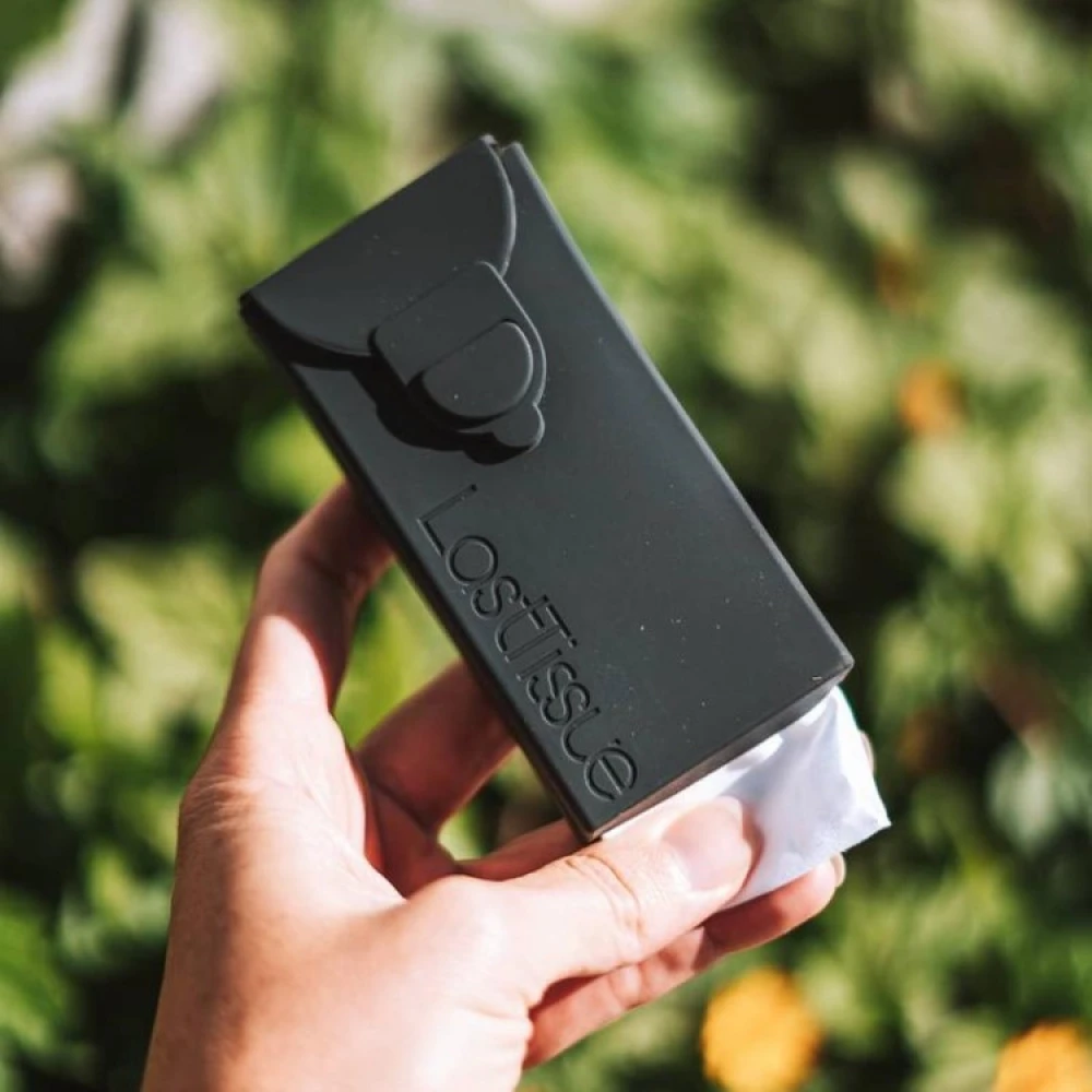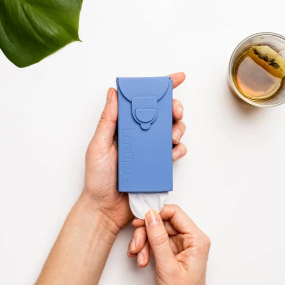 The practical and hygienic case is made of food-grade silicone and is as small as a regular disposable package. The case holds 6 handkerchiefs, easily fits in your pocket and is practical to always carry with you in case of allergies, cold days and nasal congestion.