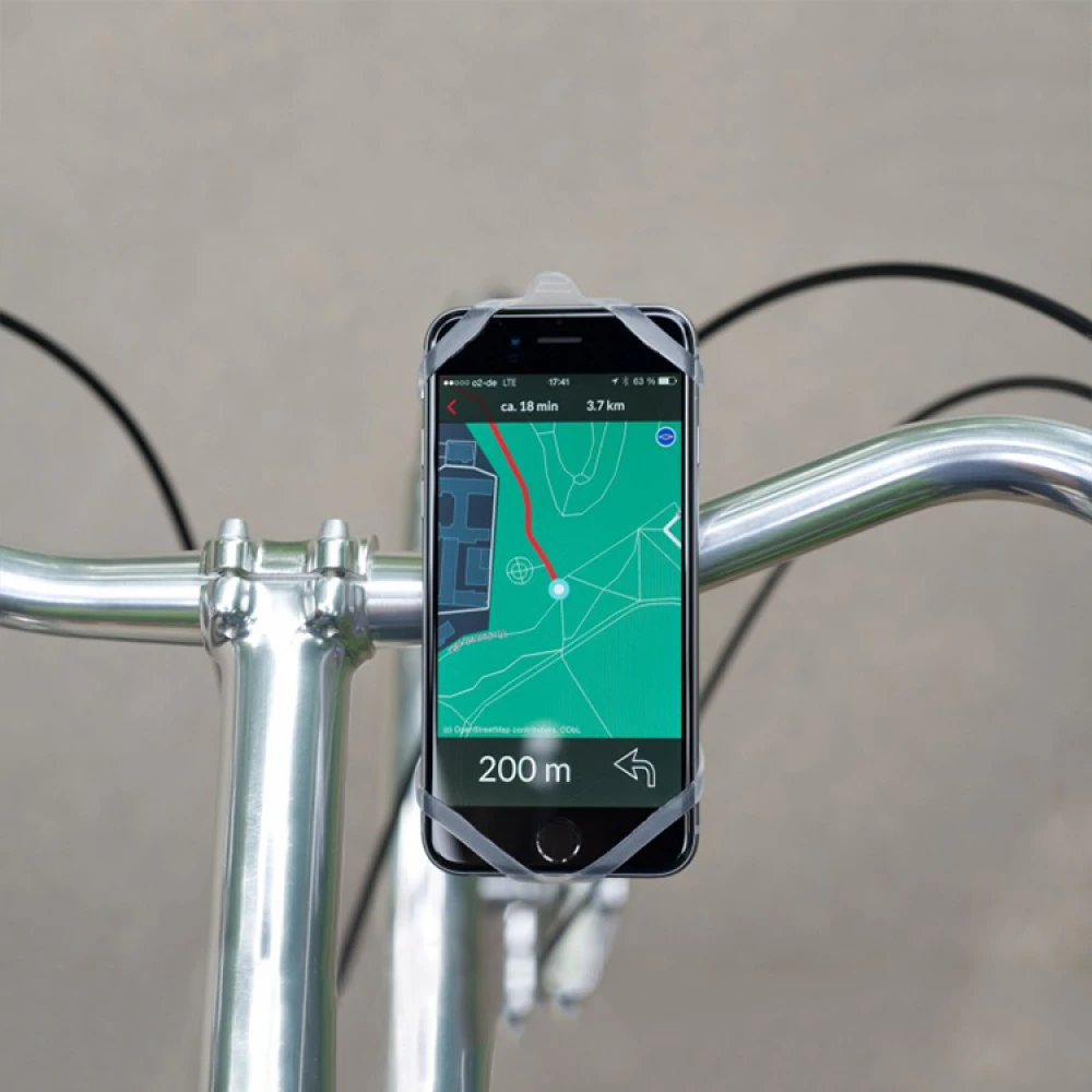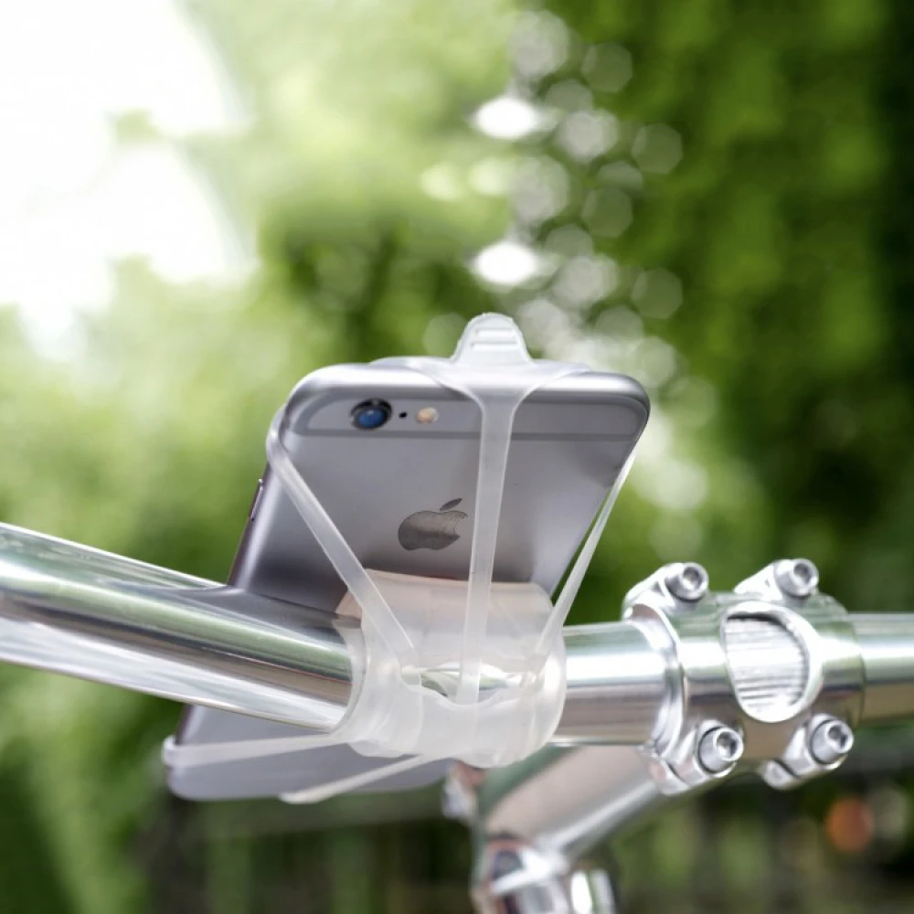 The phone mount weighs only 20 grams and the sturdy silicone can be stretched up to 400%, making it perfect for any kind of handlebar and smartphone model on the market.