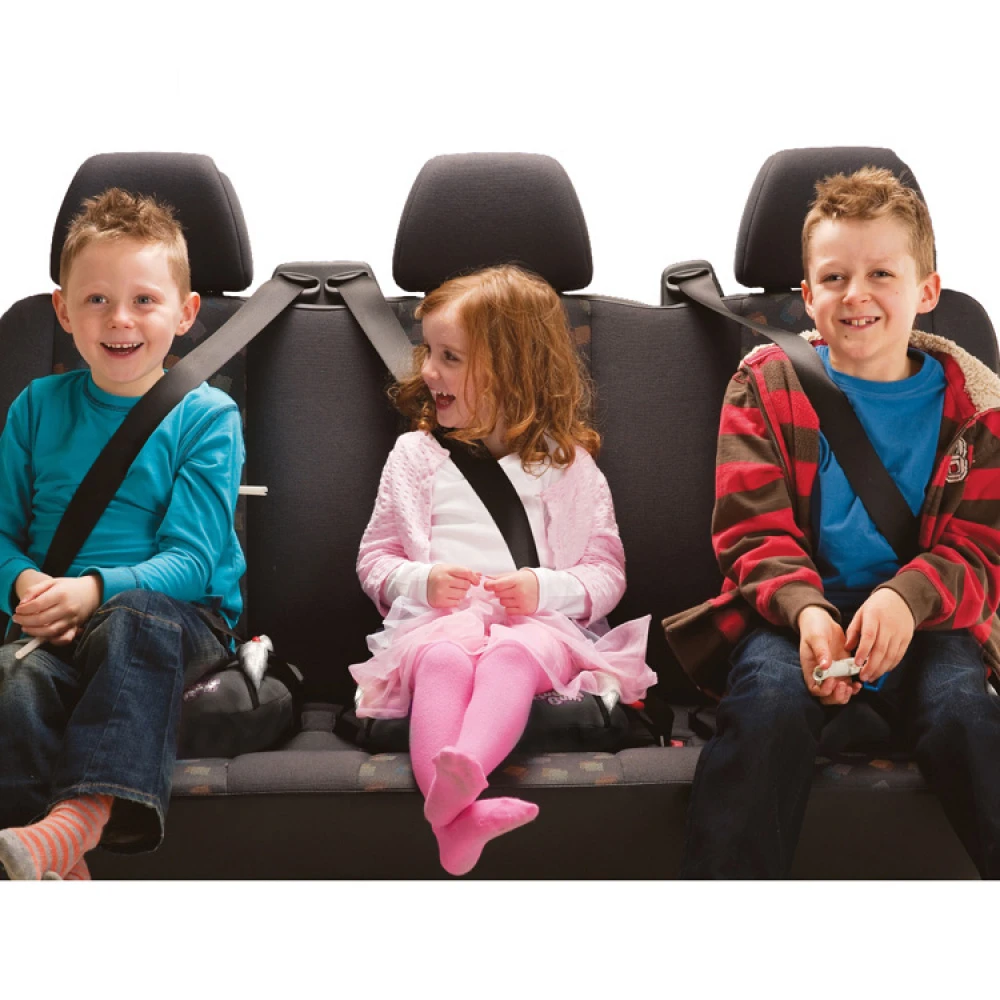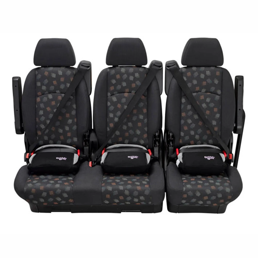 It’s possible to have three children in a row in the back seat, all on their seat cushions. The cushions can be folded together and are delivered with a small bag, so the child can take it with them without it being bulky or heavy.