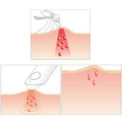 The heating pen is easy to use and easy to take with you when you go to places where there are mosquitoes, for example. It’s powered by 2 AAA alkaline batteries (included) and is easy to take out of your bag if someone gets stung.