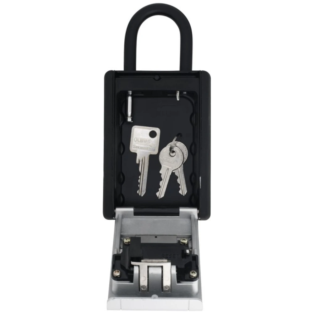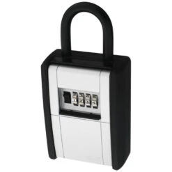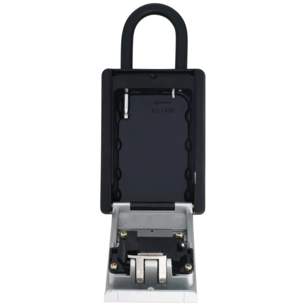 The key-stash can contain up to 14 plastic cards or 20 keys. When you have opened the hatch, you can change the code and release the shackle from the inside.