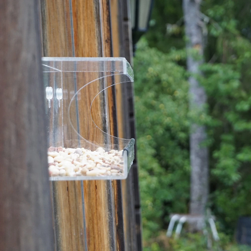 The transparent bird feeder is attached to the outside of the window using three strong suction cups. Then fill the tray with bird seeds and wait for you guests to arrive. Once the birds find their way to your bird feeder, you’ll be able to watch all the action up close.