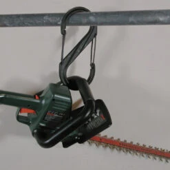 The large carabiner is practical for all possible types of anchors and suspensions. It makes it easy to organize storage and garages, where you can hang extension cables, bicycles, sports equipment, heavy tools, hoses, camping equipment and other large and awkward things.