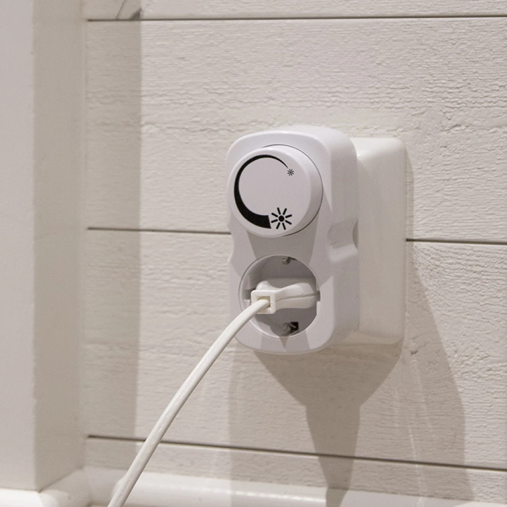 Dim the lights with this easy to install LED dimmer for the wall socket. Adjust your floor or window lamps. Put the dimmer into a regular plug socket and as long as your light bulbs are dimmer compatible, it’s easy to dim the lights.