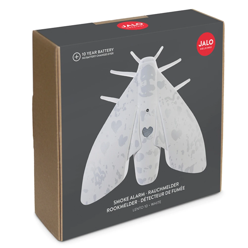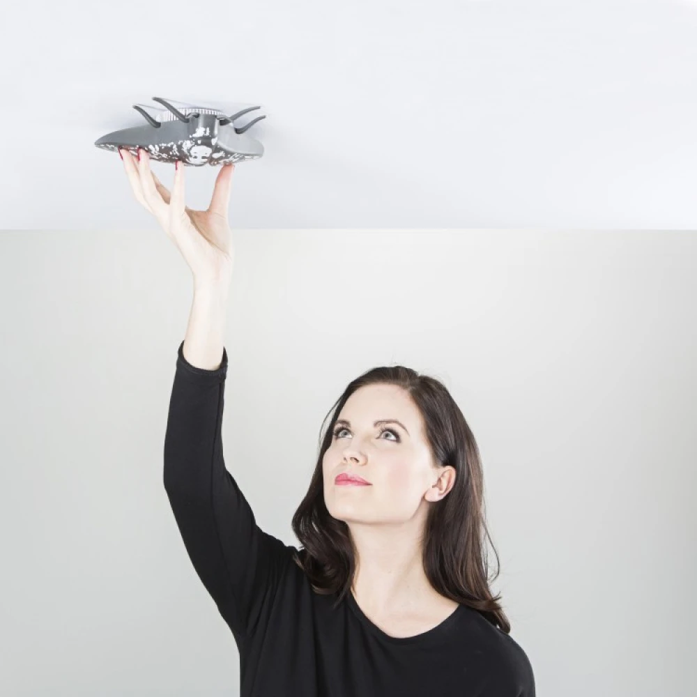 The Lento is a delightful fire alarm with a playful design. The optical fire alarm takes the shape of an insect that sits on the ceiling, guarding you and your family and alerting you if danger is imminent. The Lento mounts on the ceiling with either the supplied mounting screws or the fast-mounting adhesive tape on the underside of the alarm. The included lithium batteries have a 10 year life-span, and the entire face of the Lento alarm serves as a test button.