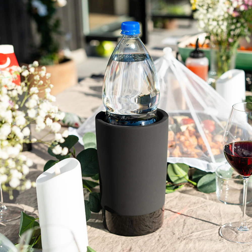 Rinse the wine cooler under cold running water for about 60 seconds so that the ceramic absorbs the cold water. The cold water will then slowly evaporate from the ceramic walls and continuously cool a bottle for a long time. Once all the water has evaporated from the ceramic walls, you can hold the wine cooler under cold running water again to easily cool it down.