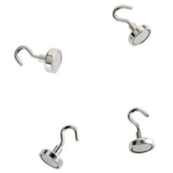 Put up new super-strong magnet hooks for your clothes and other things without having to drill in the wall. The four magnet hooks have an inbuilt neodymium magnet that attaches to all magnetic metal surfaces and holds just over 2 kg.