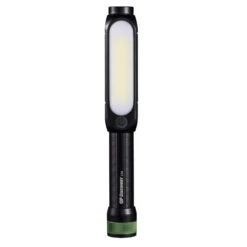 The torch has two light sources. A bright torch on the front that can illuminate up to 110 metres in front of you on the strongest setting, and another lamp on the side that gives you a strong light source when you read or work. The easy-grip handle provides a good grip when you’re holding the torch, and with the strong magnet on the short side, you can attach the torch to a magnetic surface.