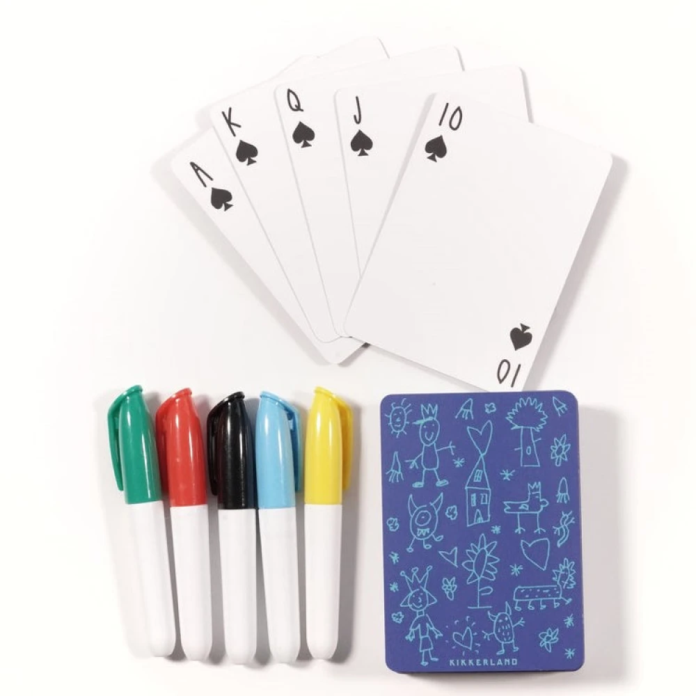 With this fun craft set, you can make your own deck of cards by drawing, colouring, designing and writing messages on the blank playing cards. The cards only have pre-printed denominations in the corners, the rest of the white surface is glossy and how you want it to look is entirely up to you .