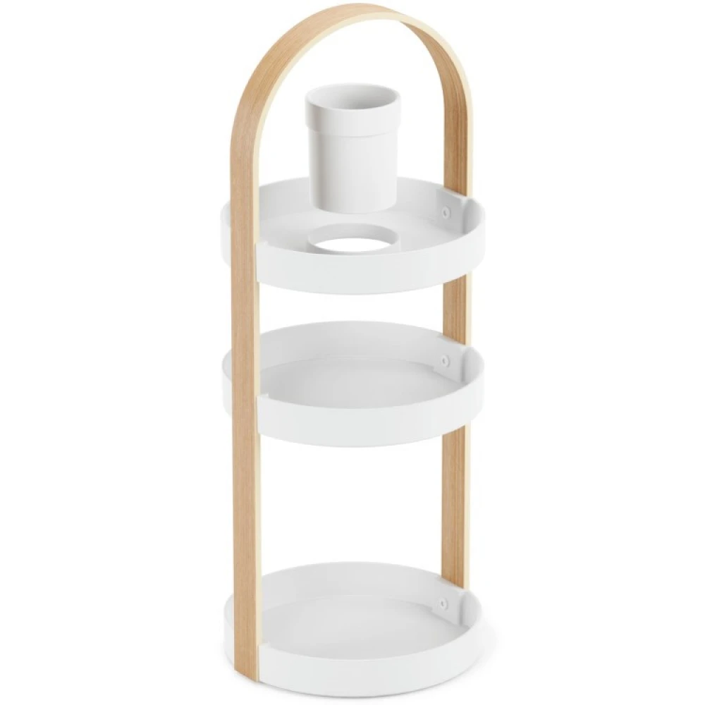 The makeup stand from Umbra is a versatile storage stand that’s perfect for storing and displaying jars, creams and make-up in the bathroom. The makeup stand has a stylish wooden frame with three shelves and a removable cup for make-up brushes and other small beauty tools.