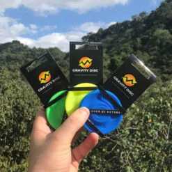 Gravity disc is a pocket-sized minifrisbee in the shape of a puck that is fun to throw to a friend or try and hit different targets with. The frisbee flies straight and accurate, and with the right technique you can make different tricks, or just make it fly really far.