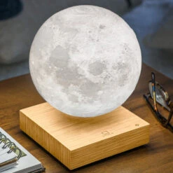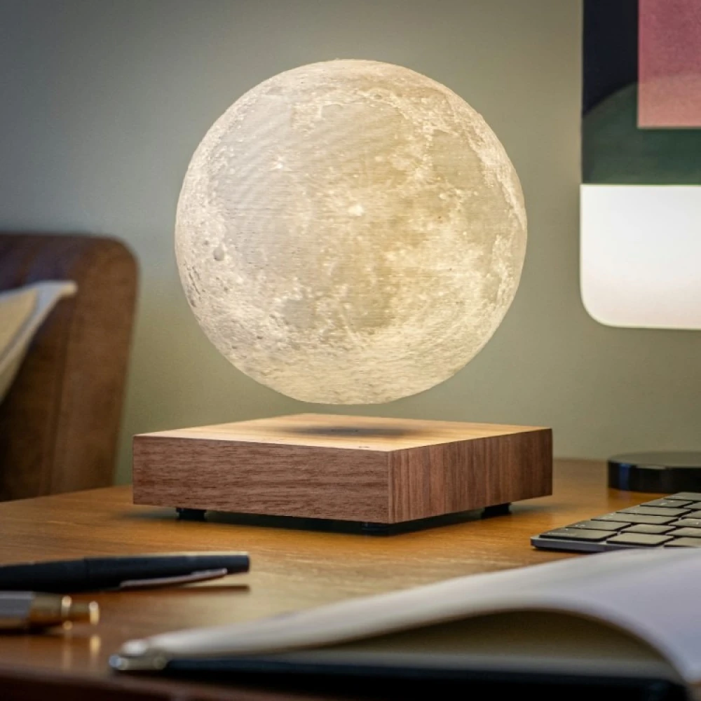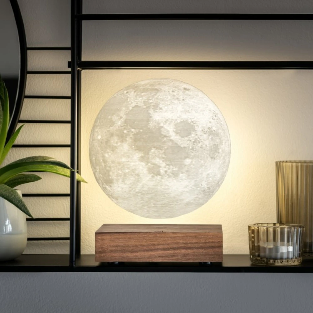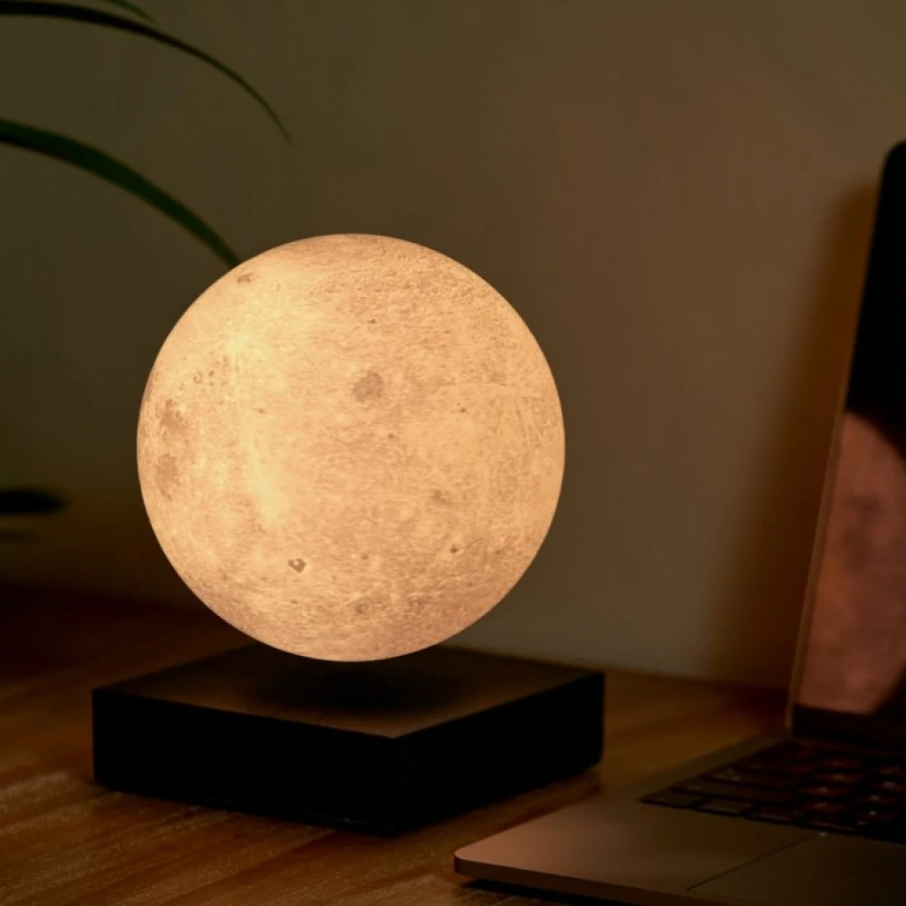 The moon lamp is a fascinating, small decorative lamp that floats, shines and rotates by itself with the help of magneticism. The moon lamp seems to defy gravity and is beautiful to use as a decoration and as a cozy light source in the home.
