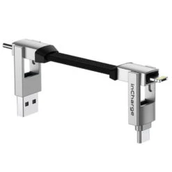 InCharge 6 is a small and lightweight multi USB cable that replaces 6 of the most common cables you need in order to charge devices and transfer data. The four different connectors on the Multi USB cable fit practically all the different devices you usually have with you, and the small cable is easily attached to the keychain using the built-in magnet.