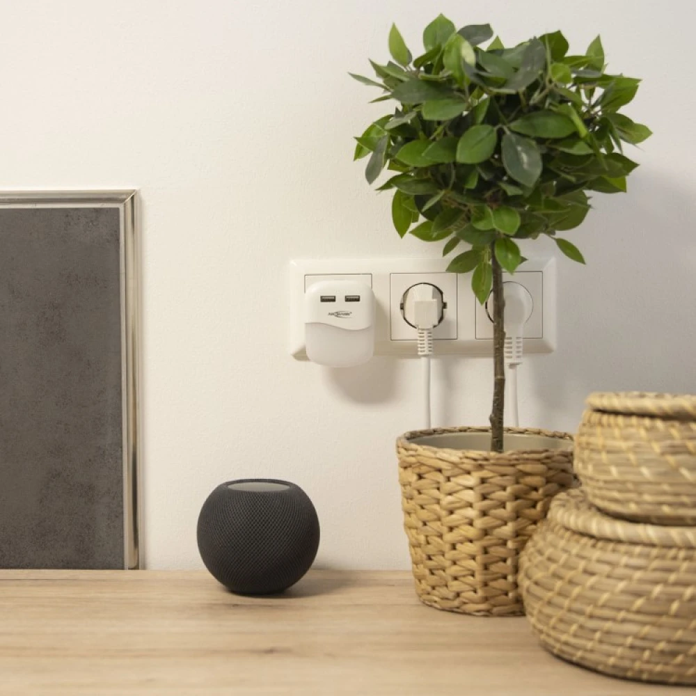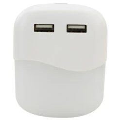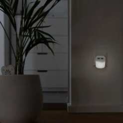 This smart night light turns on automatically when it gets dark and has two USB sockets on the front to charge your phone. The night light plugs into a wall socket and when night falls, the soft warm white light comes on automatically and shows you the way at night.