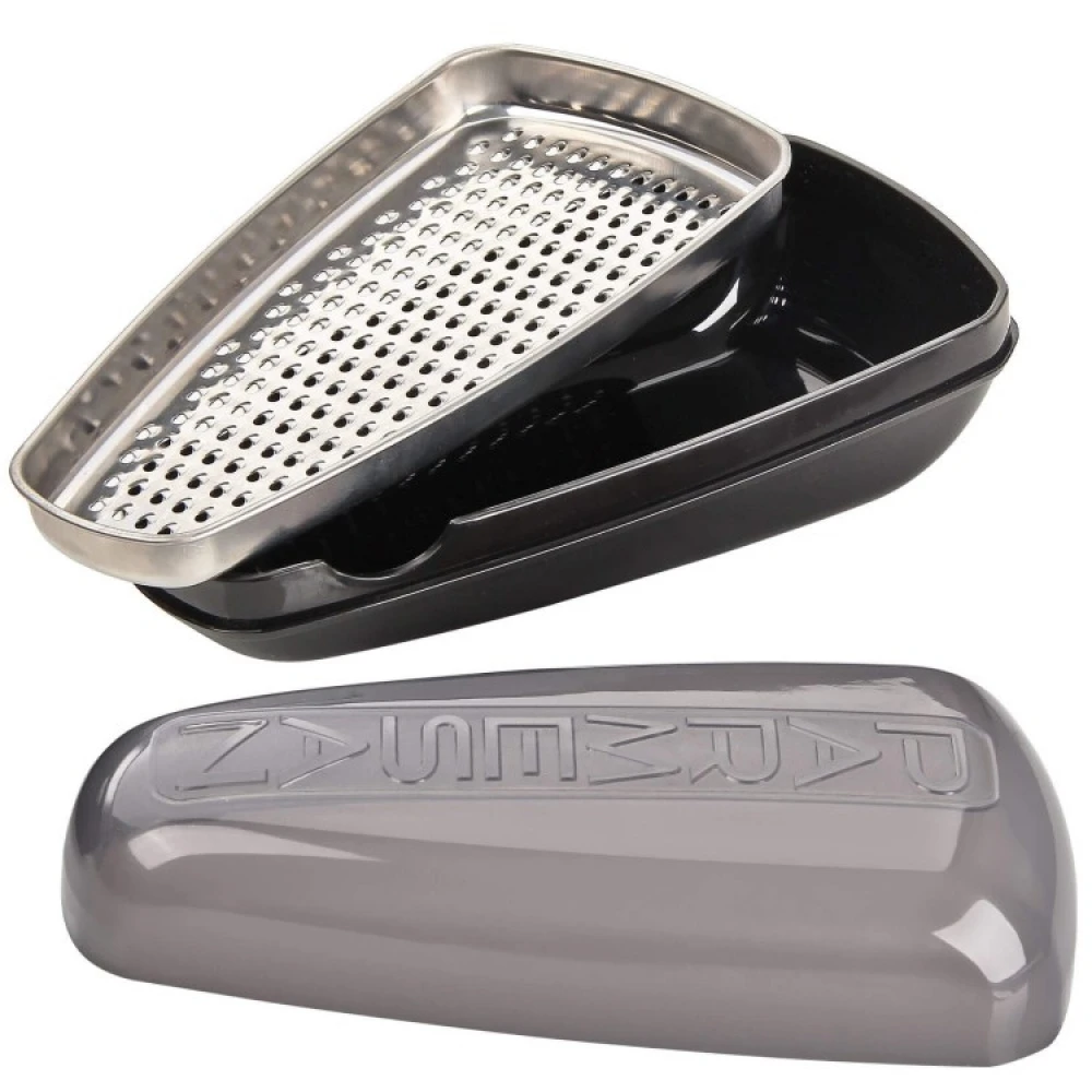 The parmesan grater is adapted for triangular-shaped parmesan cheese that you can buy in most supermarkets. The transparent lid fits tightly and prevents air from getting in and drying out the cheese.