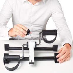 The pedal trainer can also be used as an arm bike for rehab, coordination training and upper body strength training. Set up the pedal trainer on a table at a suitable height, set the resistance with the steering wheel and cycle with your hands.