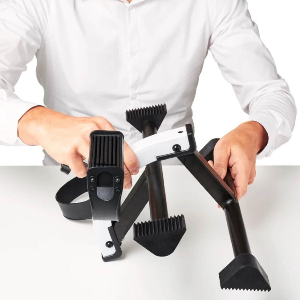 The Vitility pedal trainer is a small folding exercise bike that allows you to cycle at home and at work. With the pedal trainer, you can work on your fitness, maintain blood circulation and increase muscle strength in your legs while sitting down to work or watch TV.