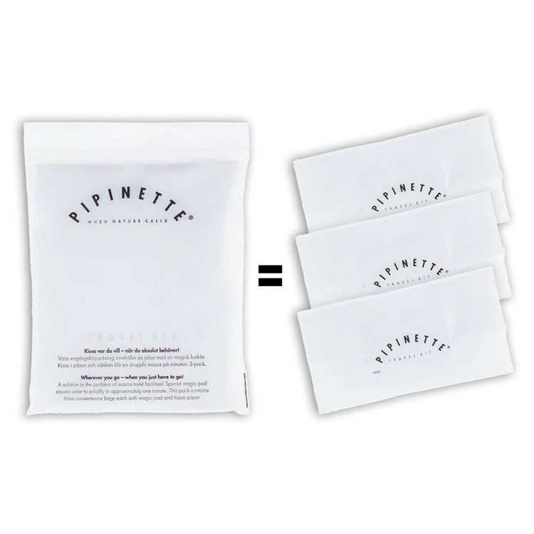 When nature calls and you need to urinate, it is good to have these super-absorbent bags which allow you to relieve yourself wherever you are. A bag can be used on its own, but benefits from being insertedin a Pipinette travel holderor in a Pipinette potty.