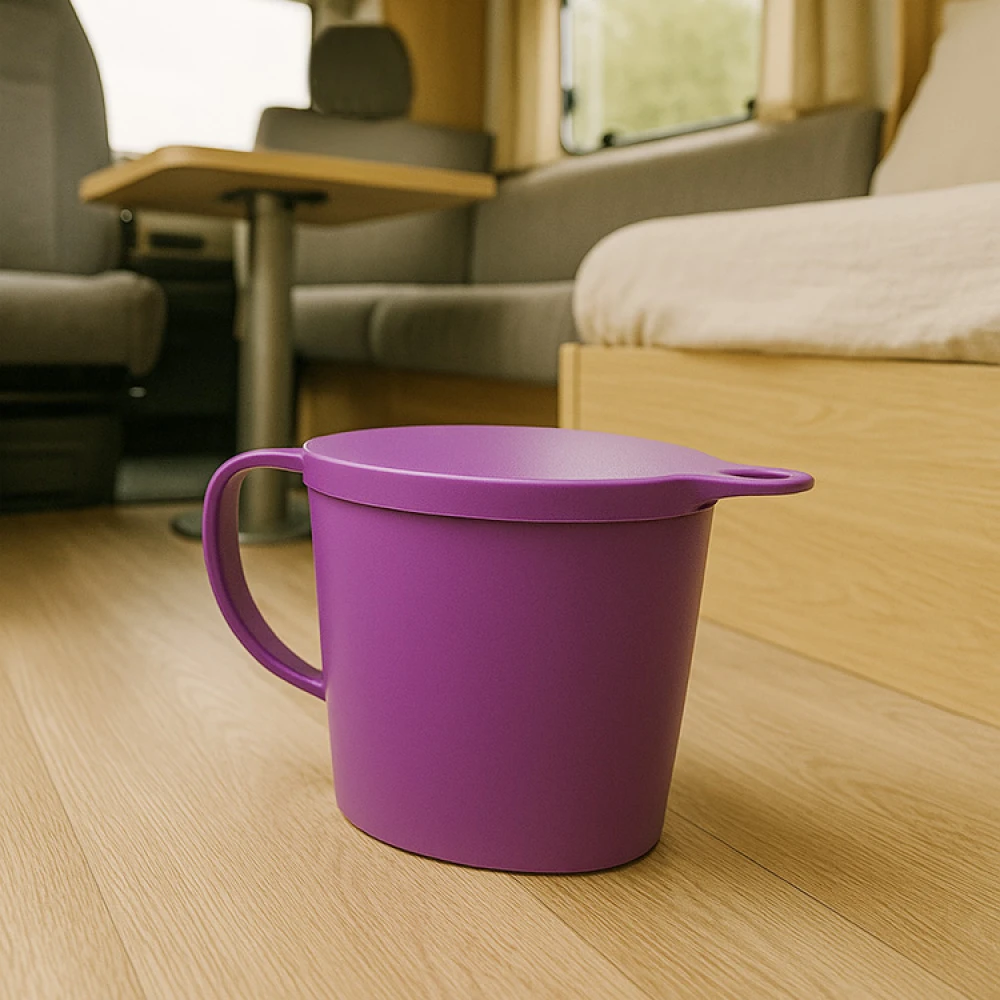 The Pipinette is a modern and portable urinal with lid that is designed so that women can comfortably use the bathroom wherever they are. It is also convenient and comfortable for men and slightly older children who are potty-trained. The Pipinette is an excellent accessory nearly anywhere: from your home or summer cottage to a leisure boat or guest house, it’s a convenient item to have in a pinch. Keep it in your car or on your stroller so that you always have easy access whenever the need arises. The pot is made of plastic and comes in several colours.