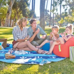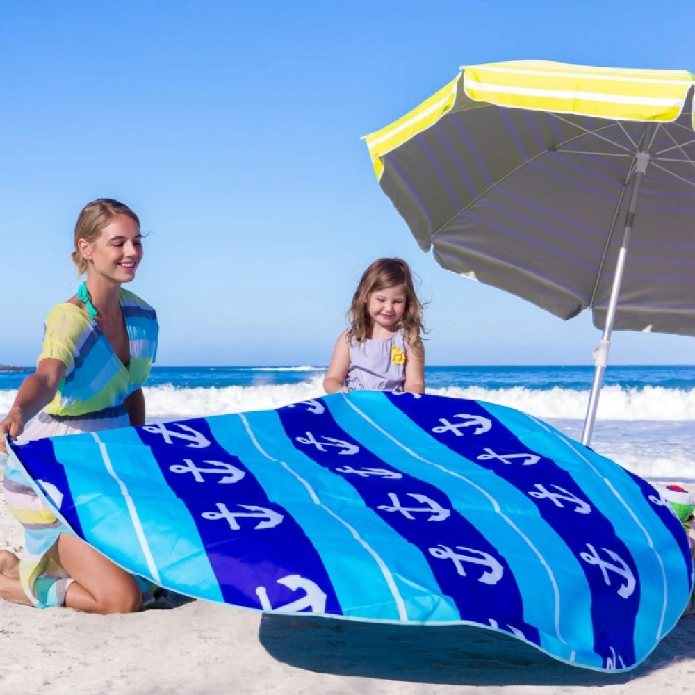 The beach blanket is made from three layers of a durable, waterproof material that can withstand the strong rays of the sun. The blanket is treated to be anti-slippery and anti-static which prevents bumps and ensures that it does not become slippery when the pool is wet.