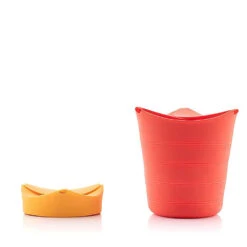 The popcorn bowl comes in a 2-pack with one yellow and one red bowl.