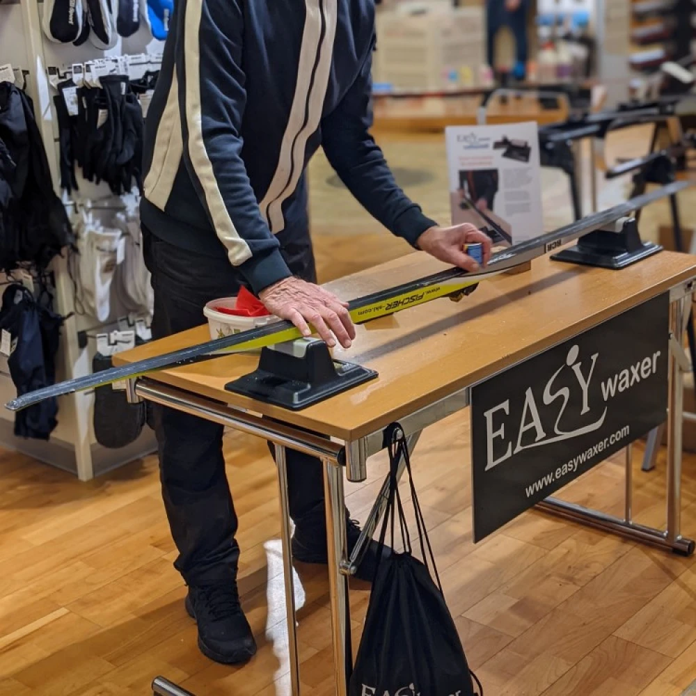 Easywaxer is a Swedish-made and portable wax stand that makes it easy to wax your skis wherever you are. The wax stand takes up little space, is easy to take with you and does not need to be screwed to the table. All you need is a flat and debris-free surface to place the two wax plates on to turn them into an effective wax bench.
