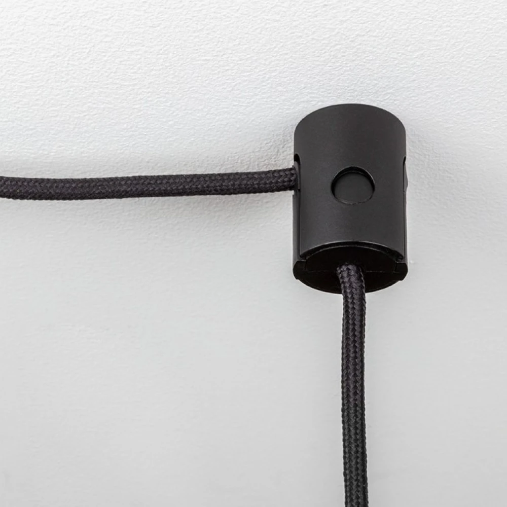 The plastic holder pinches the cord and fixes the height of the lamp. You can easily remove the plastic holder from the metal bracket again and quickly adjust the cord length and height of the lamp if it didn’t turn out perfectly straight away.