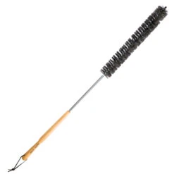 You can hold the large wooden handle with one or two hands and it is made of bee-waxed French birch trees. The bristles on the brush are made of a mixture of goat hair and synthetic hair. The brush is gentle on all surfaces and absorbs dirt and dust without leaving marks.