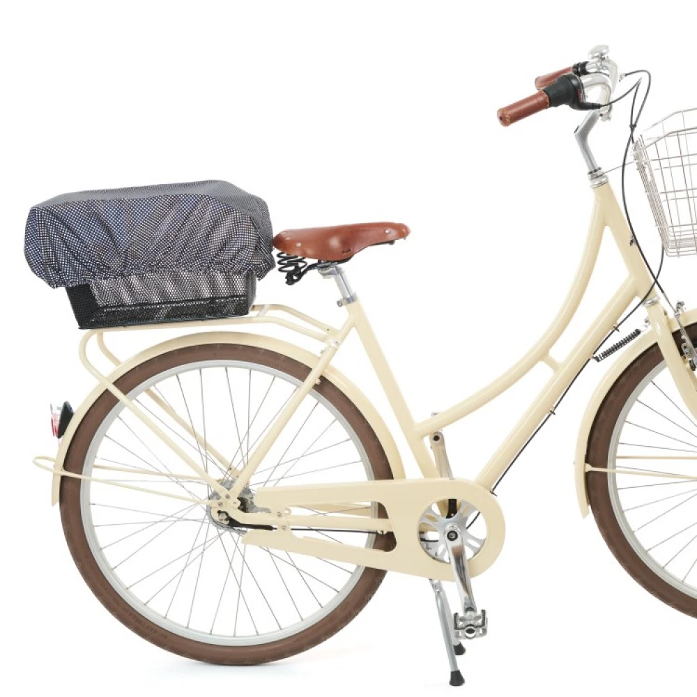 The rain cover can be used on bicycle baskets on the front and back of the bicycle, as well as on bags and backpacks. Place the rain cover over the bicycle basket or backpack and tighten the elastic strap. The cord stopper ensures that the rain cover stays firmly attached over the basket or backpack as you cycle.