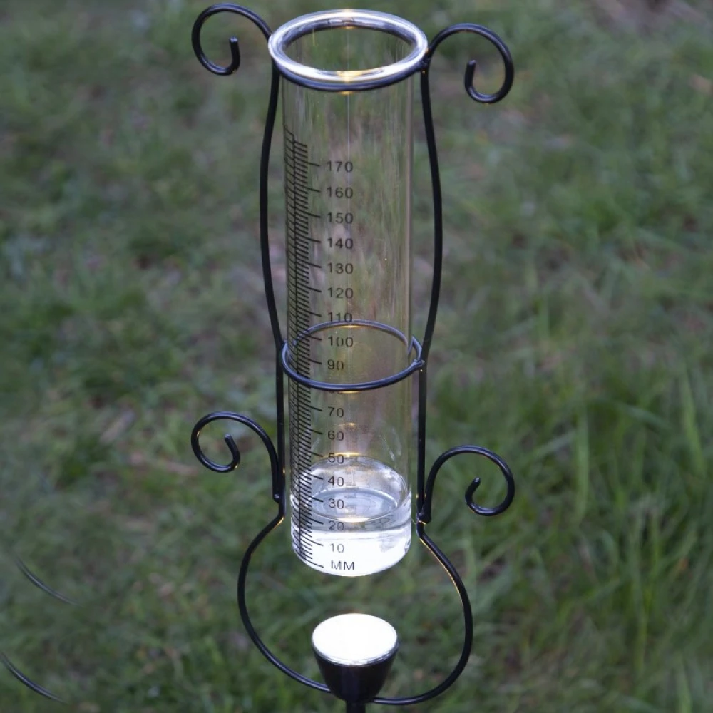 The nice rain gauge is suitable for the garden or the flower bed outside the house. If you have a deep and wide pot, you can also use the rain gauge on the balcony. Stick the black, split spike into the soil and then attach the top with the rain gauge to the spike.