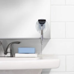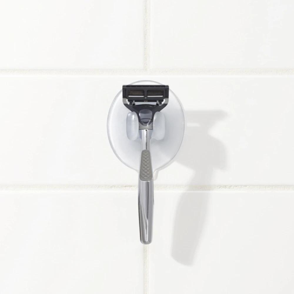 A practical wall-mounted razor holder that you simply stick onto the tiles in the shower. The holder makes sure you always have your razor at hand, and the flexible grip can hold all common razors.