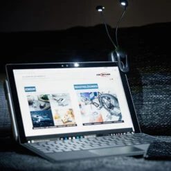 Small and portable reading light with clip that is easy to attach to a book, laptop or magnetic surface with the magnets. The reading light works great as a book light on the go and in bed, as note lighting on stage or as a work light to see the keyboard a little better when you’re working.