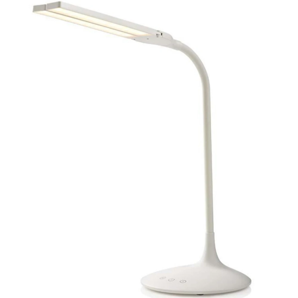 The desk lamp shines with a bright, fixed glow, and the easy-to-use touch controls allow you to adjust both the shade and brightness as needed. The bendable, two-piece lamp head also allows you to direct the light where you need it.