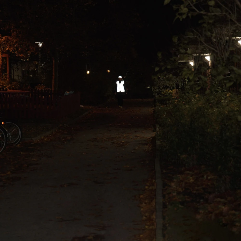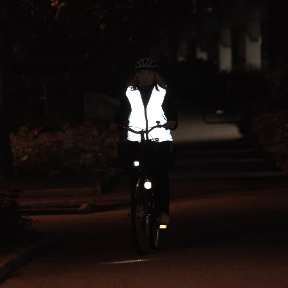 With a stylish reflective vest you increase your visibility when you are outdoors at night. The reflective vest is great for use after dusk and the silver reflective fabric makes you visible from all directions. The reflective vest is CE marked according to EN471.