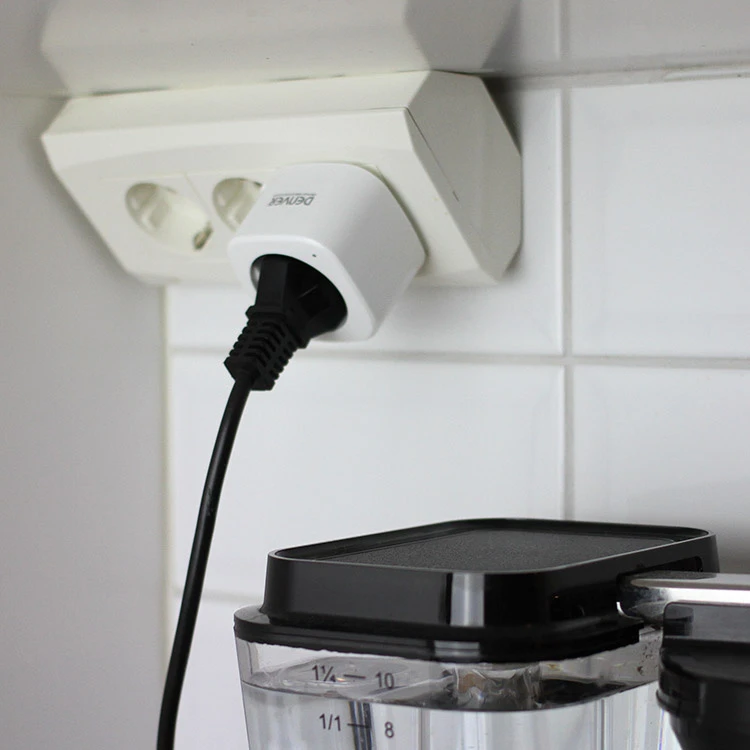 The Denver Smart Home app is free and can be found at App Store or Google Play store. Create an account in the app and then follow the instructions in the app to install the power switch. To ensure the installation runs smoothly, make sure the power switch is near your router when you install it. You can then move it anywhere within the Wi-Fi range.