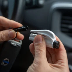 Resqme is a small and potentially life-saving tool that can hang from your car’s keyring so it’s always within arm’s reach. Resqme hangs from the keyring with a clip that can quickly be removed if the tool is needed for use.