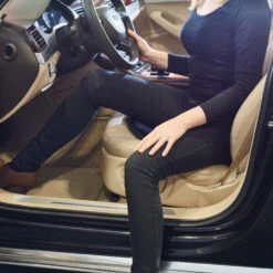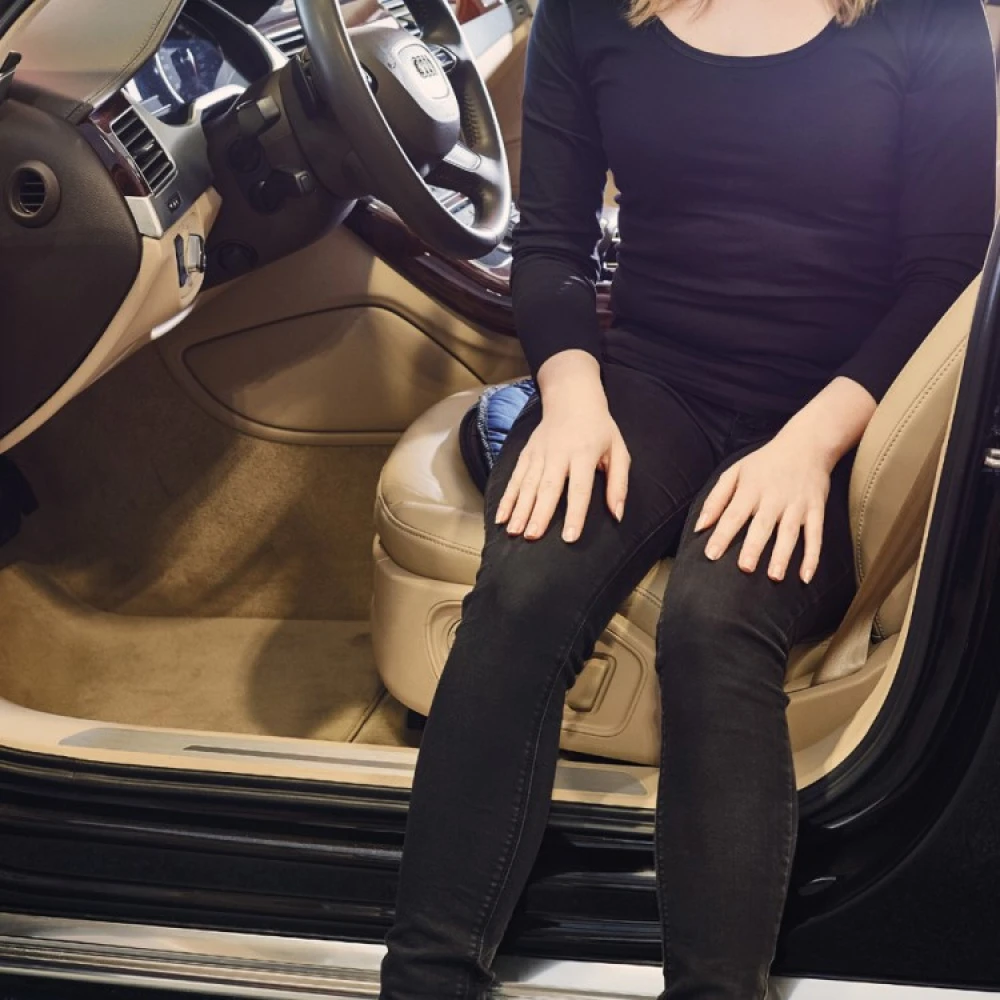 The swivelling cushion reduces torque and puts less strain on your body when you sit down. The seat cushion provides better posture and allows your body and back to be straighter when you bring your legs in through the car door or adjust the position of the seat.