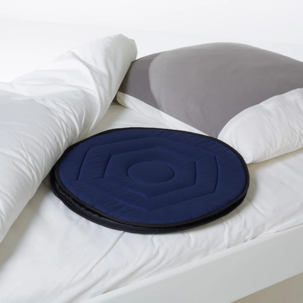 The soft seat cushion is 44 cm in diameter, has a rubberised underside and lies firmly on any surface. The swivel cushion is ideal for use on car seats, kitchen chairs and wheelchairs. You can also use the seat cushion on your bed to make getting up and down easier.