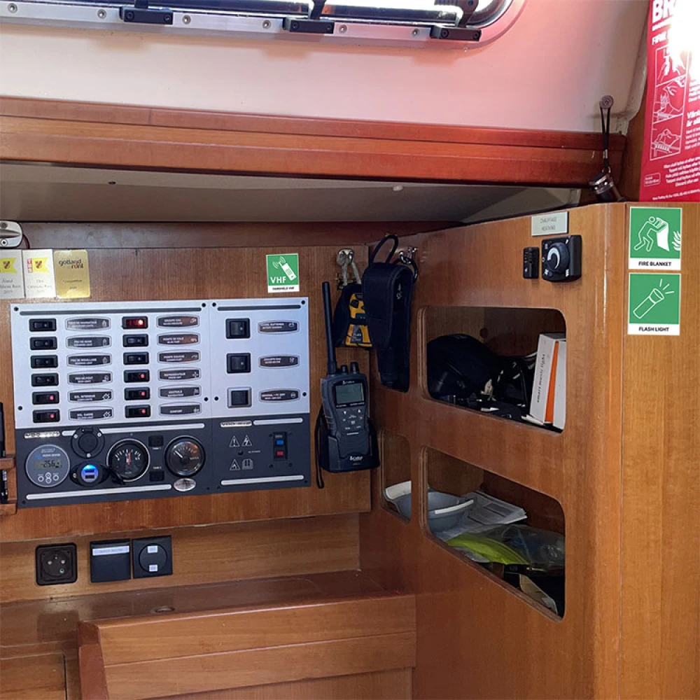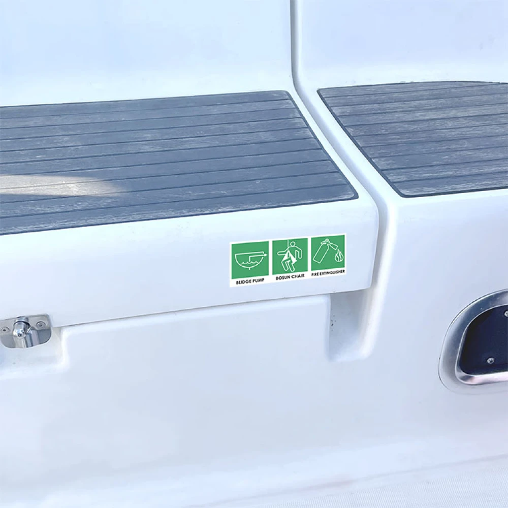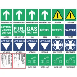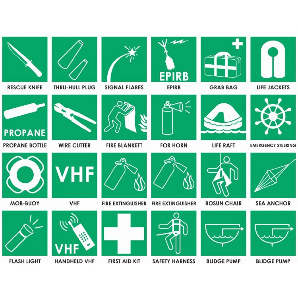 With self-adhesive safety stickers you can clearly show where important and necessary equipment is located on the boat. Designed for use on both powerboats and sailboats, the self-adhesive safety stickers clearly mark items where they are located and on a self-adhesive overview map.