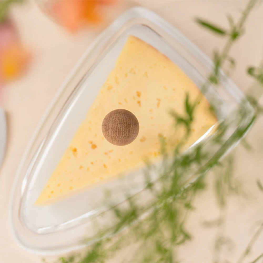 The elegant dome has a knob made of oak, providing a good grip when removing the cover. The dome is spacious and fits (triangular) hard cheeses that are up to 8 centimetres high and 13 centimetres wide.